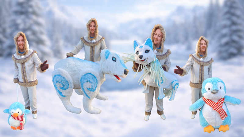 Onze wintervrienden uit het hoge noorden zijn er klaar voor! In de parade lopen een grote pinguïn, drie kleine pinguïns, twee speelse poolvossen en een indrukwekkende ijsbeer. Wat deze dieren extra bijzonder maakt? Ze zitten vol met verborgen mechaniek! De pinguïns kunnen vrolijk met hun handjes bewegen en de poolvossen en ijsbeer laten zelfs hun mond bewegen. Het zorgt voor een magisch en levendig winters tafereel waar kinderen (en stiekem ook volwassenen) niet naar uitgekeken raken. Perfect voor winter-events, kerstmarkten en een winkelcentrum!